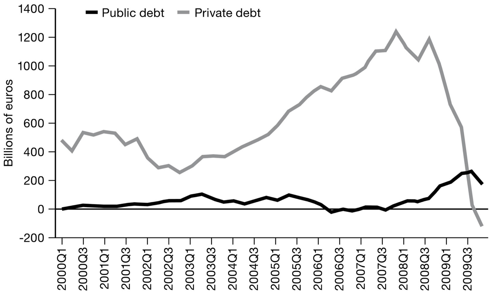 Growth in Private and Public Debt in the Eurozone, 2000-2009 (year-on-year)