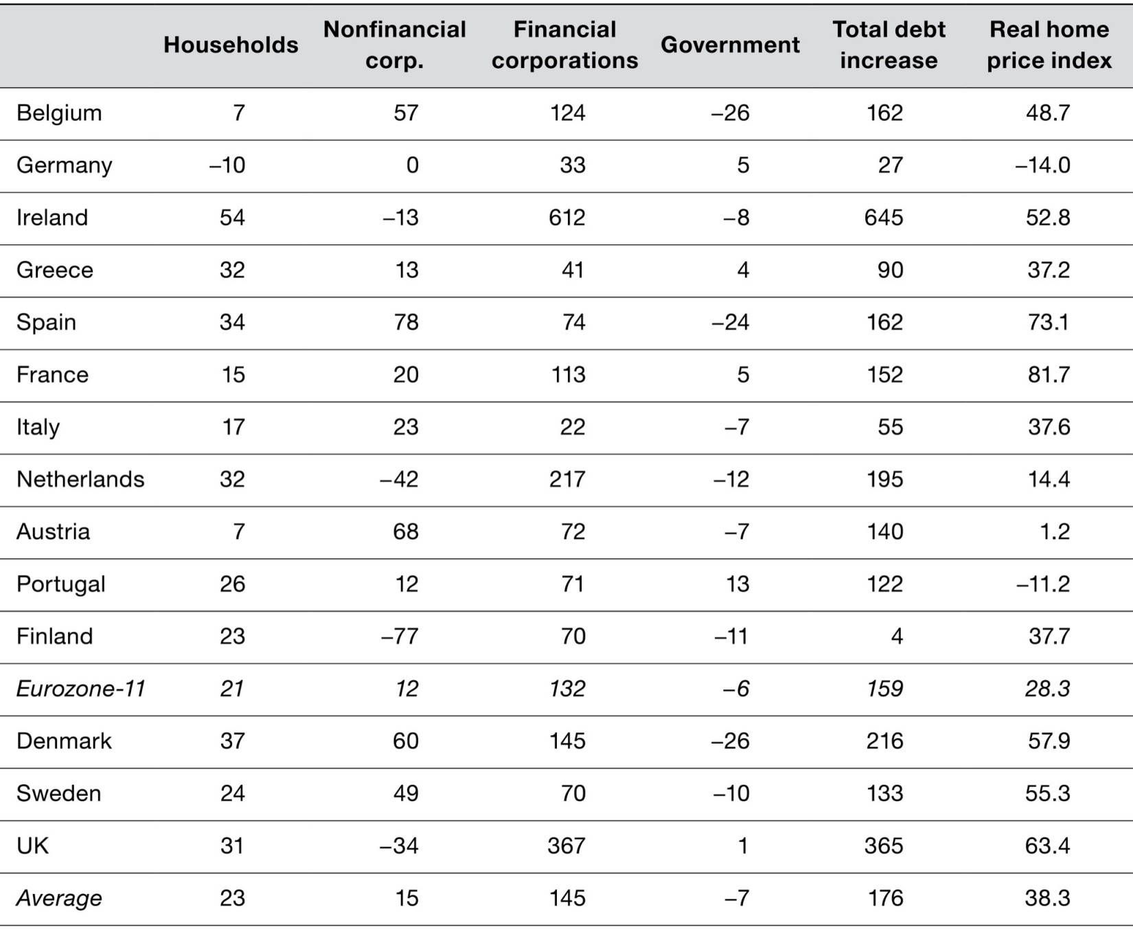 Source: Calculated from Eurostat and OECD data (for the real home price index) from S. T. H. Storm and C. W. M. Naastepad, “Myths, Mix-ups and Mishandlings: What Caused the Eurozone Crisis?,” Annual Conference Institute for New Economic Thinking, “Liberté, Égalité, Fragilité,” Paris, France, April 2015, https://www.ineteconomics.org/uploads/papers/The-Eurozone-Crisis.pdf .