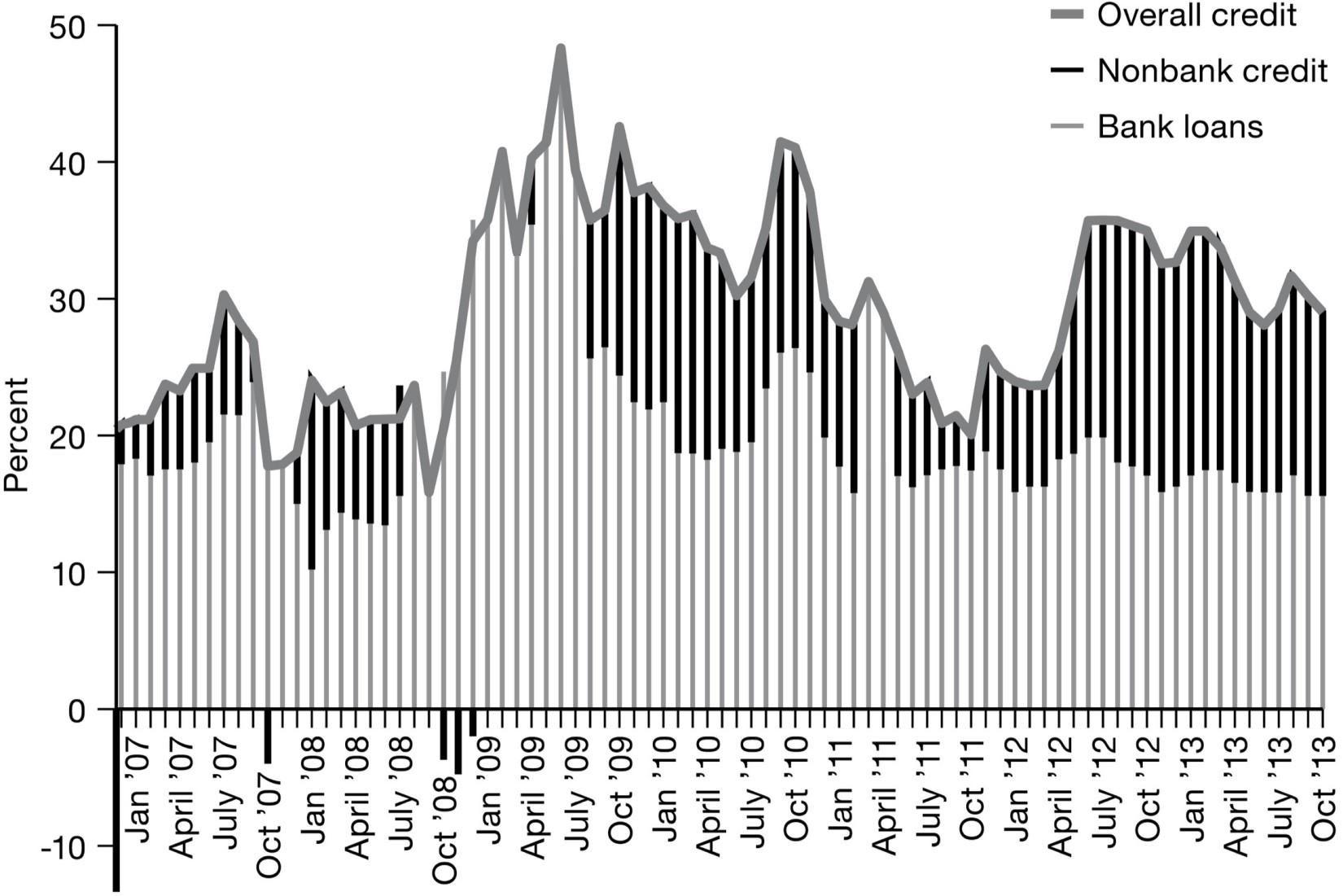 China’s Credit Stimulus, 2007-2013 (year-on-year growth rate)