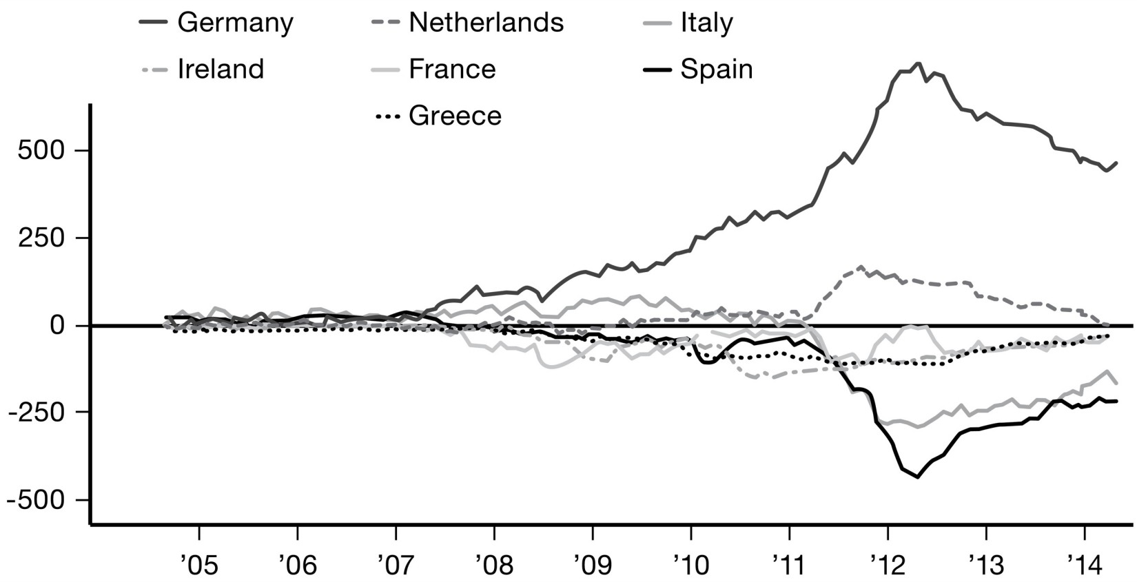 TARGET2 Balances for Select Eurozone Nations (in billions of euros)
