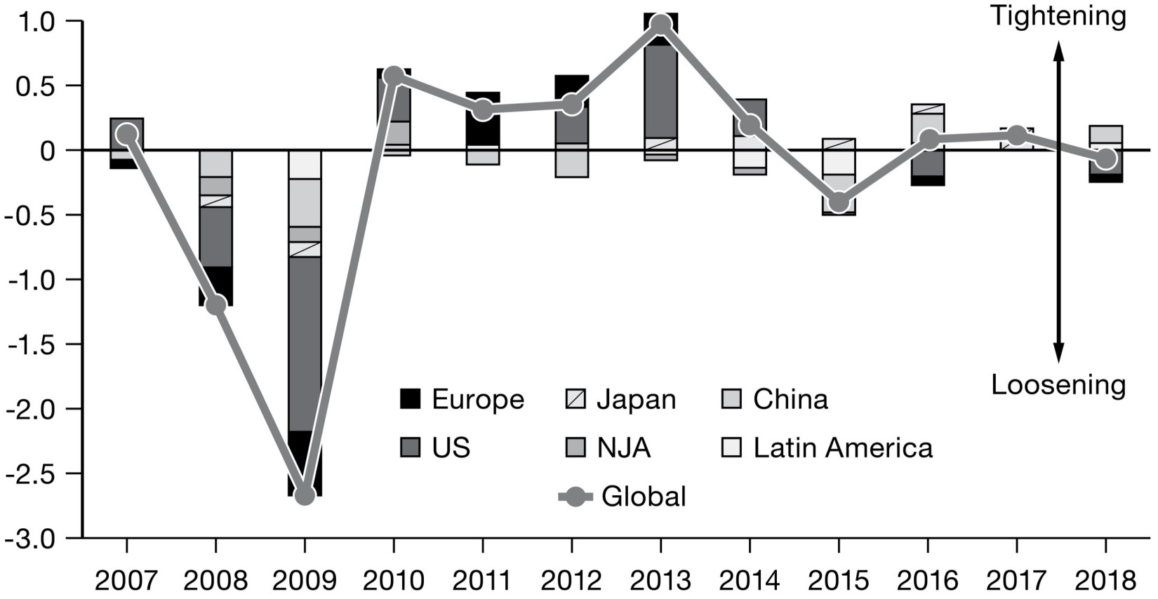Global Fiscal Tightening or Loosening as % of Global GDP