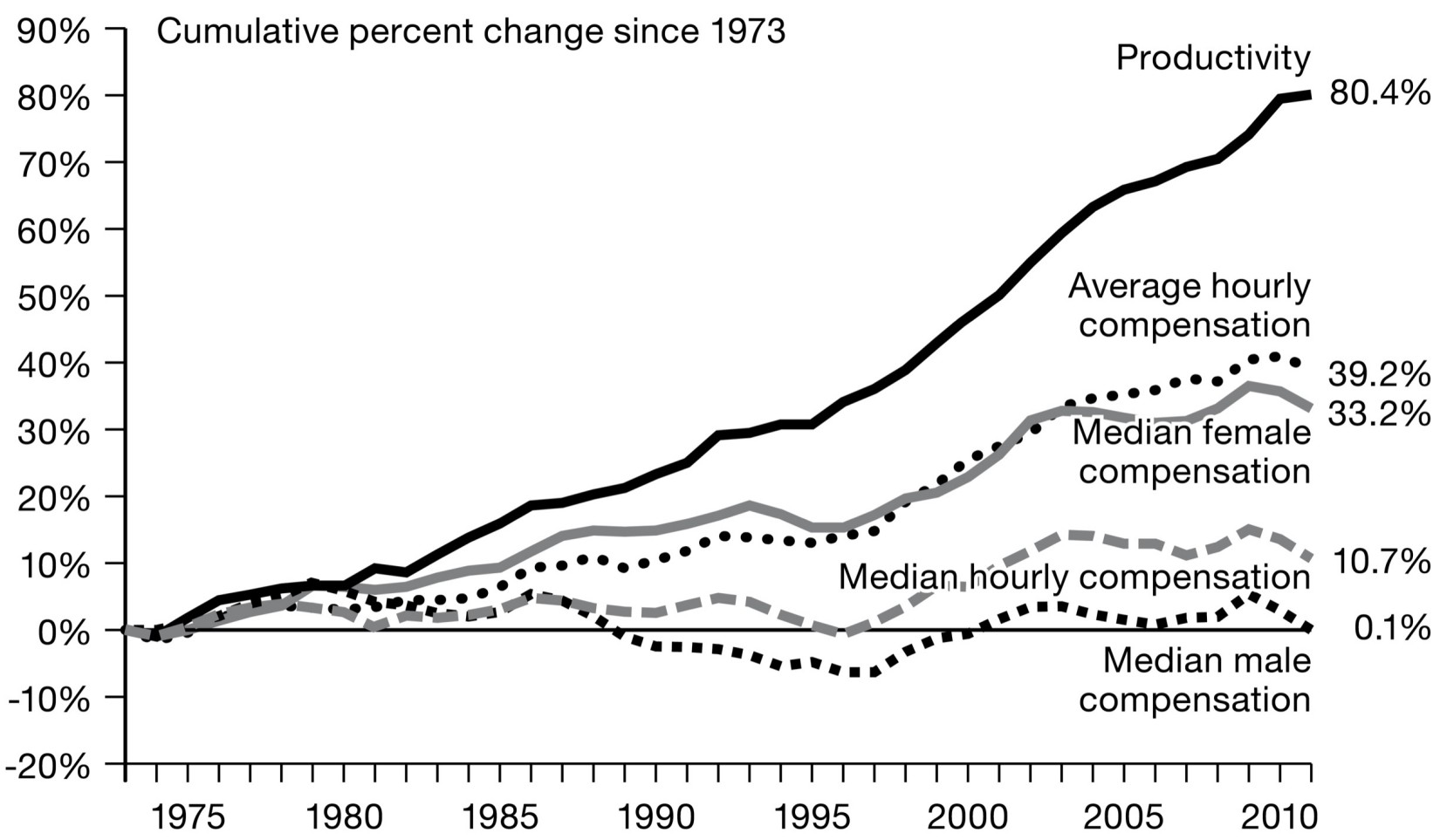 Source: Lawrence Mishel, “The Wedges Between Productivity and Median Compensation Growth,” EPI Issue Brief 330 (2012): 1–7, http://www.epi.org/publication/ib330-productivity-vs-compensation/ .