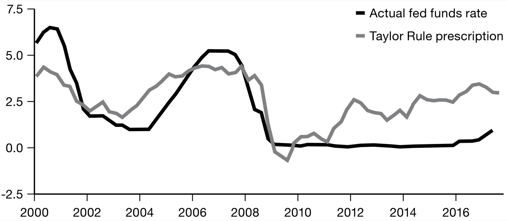 Actual Fed Funds Rate and Taylor Rule Prescription
