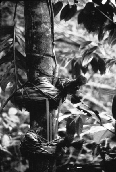 Matowä’s bamboo arrow point quiver—his tora —was taken down from the rafters of Torokoiwä’s house and placed on the ground next to the gourds. All the adults in the village crowded in close to the artifacts, squatting on their haunches, weeping and singing very sad songs, calling to Matowä by endearing kinship terms. I was gently and gradually pushed out of the crowd to the periphery and had difficulty seeing exactly what they were doing. I dared not stand up to see better because this would be offensive to the Monou-teri and they were in an extremely volatile mood.