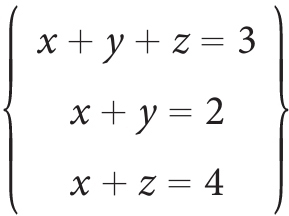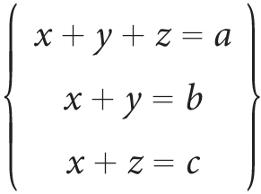 这是一个简单的代入消去过程,但基本上,它是自19世纪后便为大家熟知的克拉玛公式(Cramer’s rule)。在塞马里达斯的时代,它被称为“塞马里达斯之花”(the flower of Thymaridas)。如果我们继续求其他未知数,我们会得到y =−1及z =1。尽管解y =−1行得通,但它却被认为是荒谬的,因为−1是一个负的量。分数和有理数都可以被接受;然而,16世纪之前,负数——它被视为负债当然没问题——在欧洲不被视为一个真实的数。 [1]
