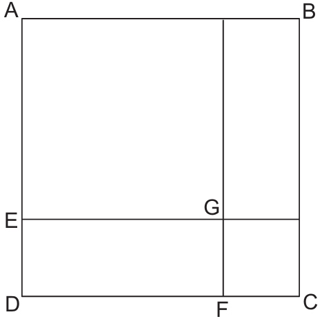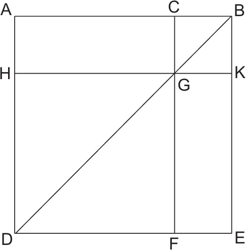 如果一条直线随机地切成两段,直线上所张拓出来的正方形,会等于两个线段各自张拓出来的正方形之和,再加上由这两个线段所形成的长方形之两倍。