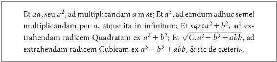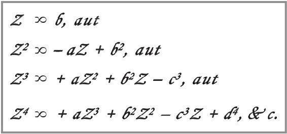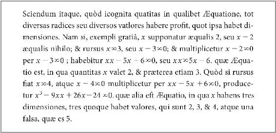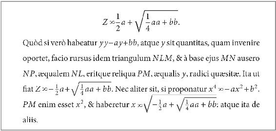我们不应愚蠢地认为,以文字表达的符号形式,只是一种方便的速记法。它当然是速记法,但不仅如此,它还有助于人类思维超越自然语言所书写成的文字所带来的含混不清与误解。更进一步,这种符号体系允许思维将特殊的陈述提升至其一般化的形式。到了笛卡儿的时代,方程式几乎完全以现代的符号形式写成,符号终于达到了——如托比亚斯·丹齐克所言:“从文字的奴役中,将代数解放出来。”