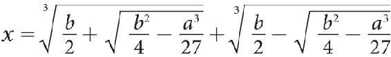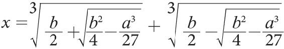 方程式x 2 +3x =4有两个解(x =1和x =−4),然而,只有一个是正的,因此,只有一个解被视为数。这类方程式可以用几何的方式求解,事实上,它可能是因为实用的几何问题而得到的灵感,比如说,试求一个长比宽多三个“斯塔德”(stadion ,1斯塔德约185米),且面积等于四个平方“斯塔德”的长方形的宽。在这个例子中,对这样的几何问题,满足方程式x 2 +3x =4的负数解−4,似乎无法应用于边长应为正的长方形。15世纪的数学家无法知道,几何本身何以包含满足该方程式的负数。方程式本身给了几何没有找到的某些东西,即便负数解在几何学里亦表示了相当真实的东西。