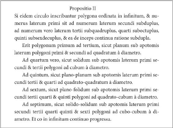 我这里所考虑的数学量,并非由最小的可能部分组成,而是由一连续的运动来描述。线的描述,并非由部分的并置(apposition)所产生,而是由连续运动的点来描述;表面积是由线的运动来描述,体积是由表面积的运动来描述,角是由边的旋转来描述,时间是连续的通量,依此类推。这些皆起源发生于真实的物理本质中,并日复一日在物体的运动中得到印证。