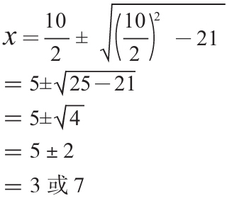将第一式当中的y 用x 表示,代入第二式后可得x 2 -10x +21=0。